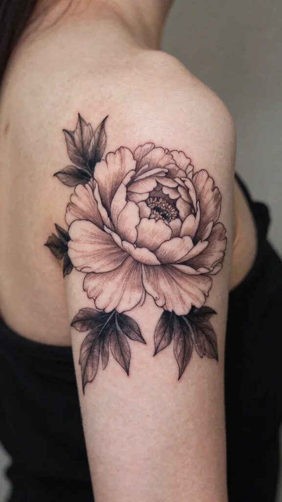 A simple peony tattoo serves as a beautiful cover-up due to its bold yet graceful nature. Peonies symbolize romance and prosperity, making them a meaningful choice for covering past tattoos. Their full petals are perfect for camouflaging older ink while adding elegance to your arm. You can opt for a single peony or group several together for a stunning visual impact.