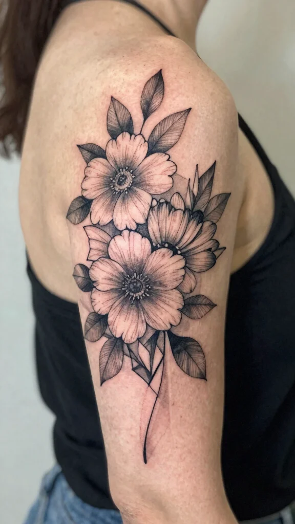 Combine floral elements with geometric designs for a modern twist that adds depth and interest to your tattoo.