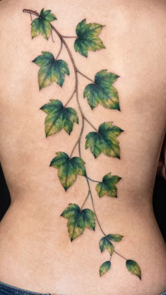 Select a variety of leaves for a dynamic composition, mixing bold leaves with delicate vines. Customize the color palette, from rich greens to warm autumn hues, depending on your style. Discuss with your artist how to position the vines for a natural flow that complements your body shape.