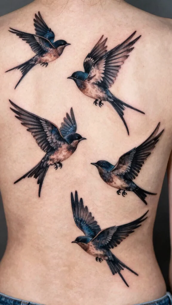Different bird species carry unique meanings; doves symbolize peace, while swallows represent home and loyalty. Use varying sizes of birds to create a sense of movement and depth in your design. Work with your tattoo artist to ensure the orientation of the birds flows naturally with your body’s lines.