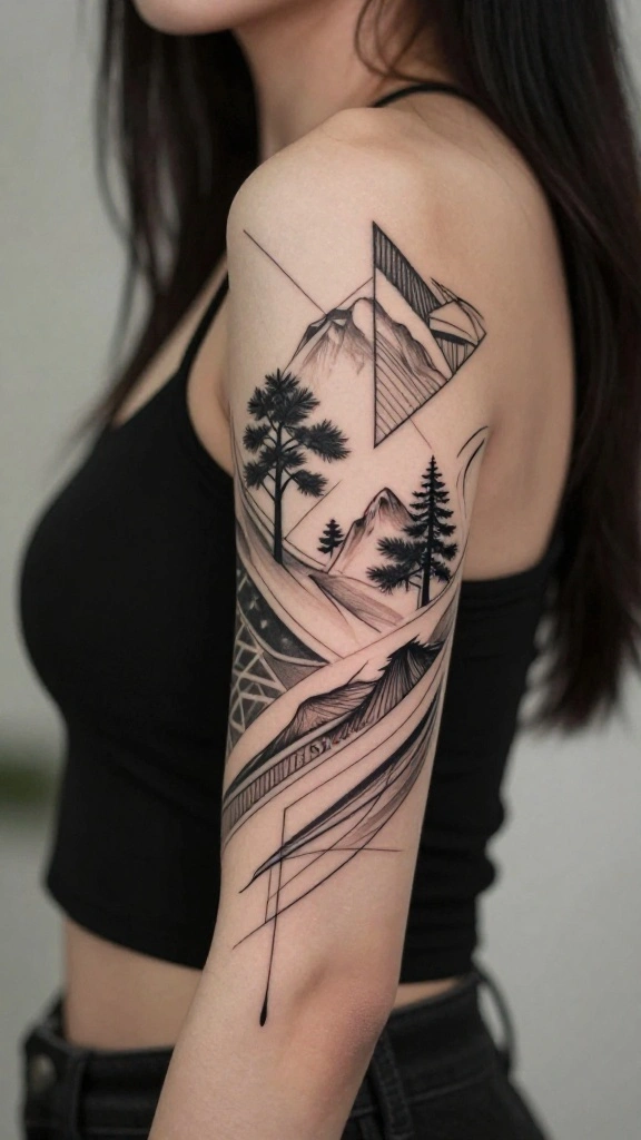Geometric tattoos have become popular for their modern artistic flair. A sleeve that blends geometric shapes with natural elements like trees or flowers creates a striking contrast of structure and growth.