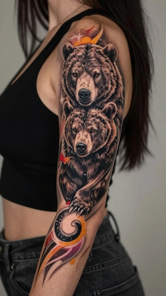 Animal totem tattoos symbolize strength and guidance. A sleeve featuring an animal totem like a bear or eagle represents qualities that resonate with you. These designs carry deep meanings, reflecting the spirit of the animal.