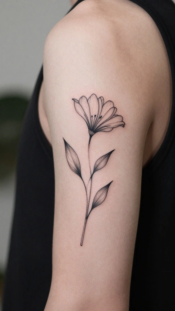 For instance, a lotus symbolizes purity, while a rose represents love. Choosing a flower that resonates with you can enhance the tattoo’s meaning. Placement on the forearm or shoulder allows for visibility, showcasing its beauty while keeping a clean aesthetic. Opt for a design that remains crisp and clear to maintain the minimalist vibe.