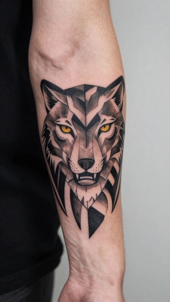 Want to embody your spirit animal in a modern way? Geometric animal face tattoos creatively combine artistry with symbolism. These designs use geometric shapes to stylize animal faces, making them both eye-catching and unique.