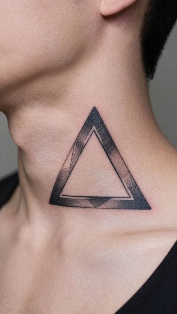 Geometric tattoos like triangles offer a striking yet simple aesthetic perfect for minimalist neck tattoos.