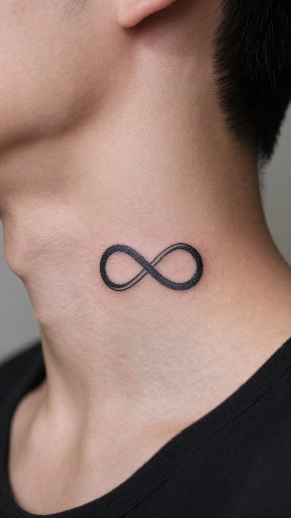 The infinity symbol beautifully represents endless possibilities and eternal love, making it a popular minimalist tattoo choice. A small infinity symbol on the neck serves as a reminder of the infinite journeys life has to offer.