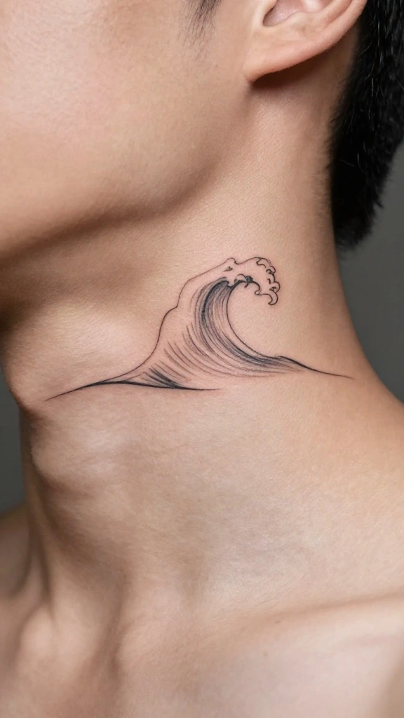 A small wave tattoo can flow gracefully along the contours of your neck, embodying a sense of motion and life. The minimalist approach keeps it striking while remaining subtle for everyday wear.