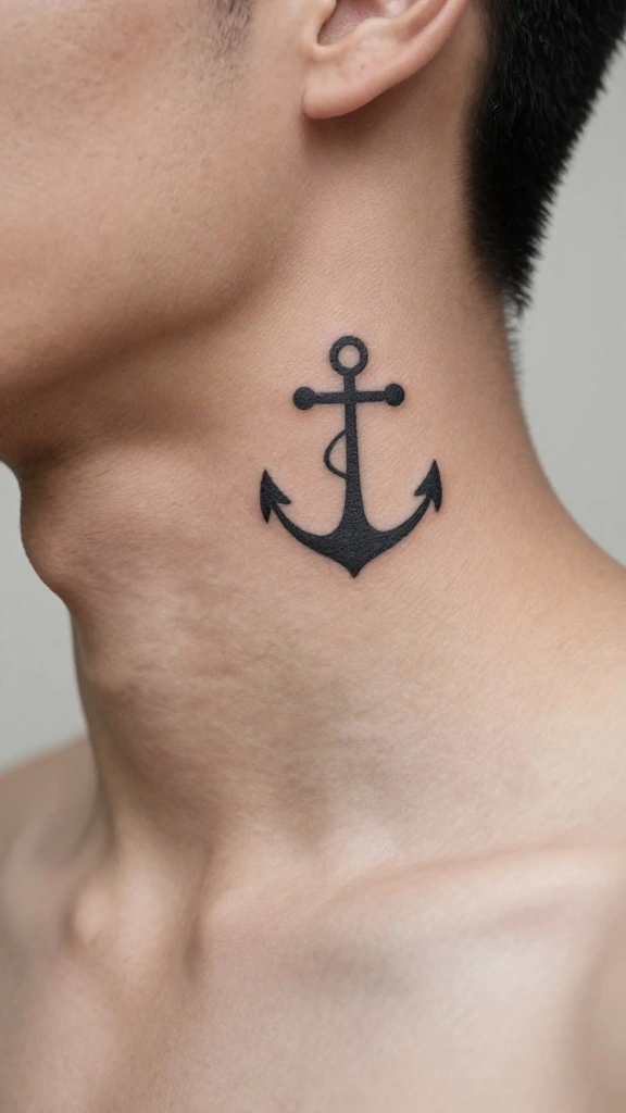 Anchors carry deep meanings of stability and strength, making them a favorite for minimalist neck tattoos. A small anchor design can serve as a reminder to stay grounded, even during life’s storms. Its simple lines give it a refined look while still being meaningful.