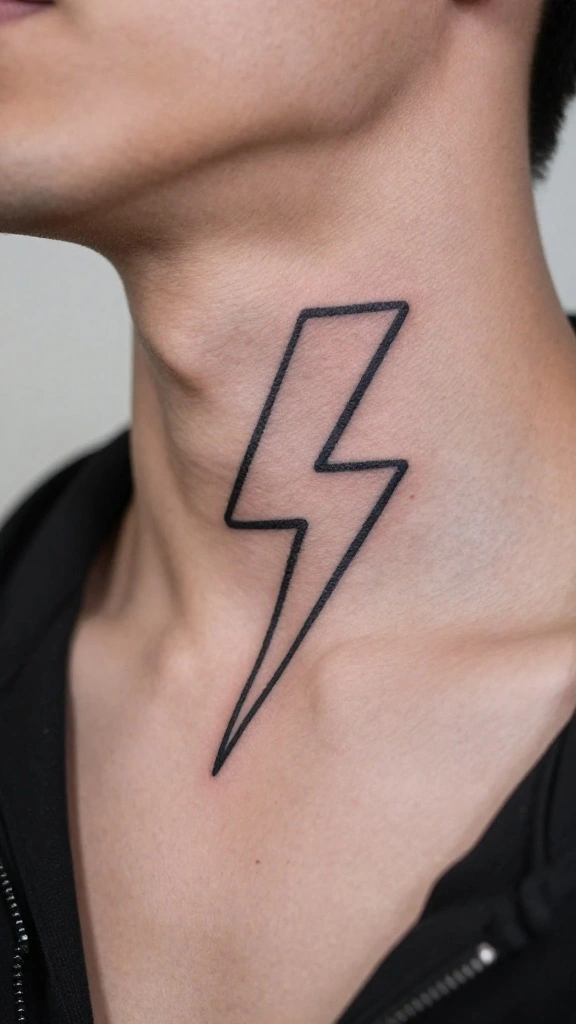 A minimalist lightning bolt tattoo represents power and transformation, making it a bold choice for neck art. This design offers striking visual impact while maintaining a clean and streamlined look.