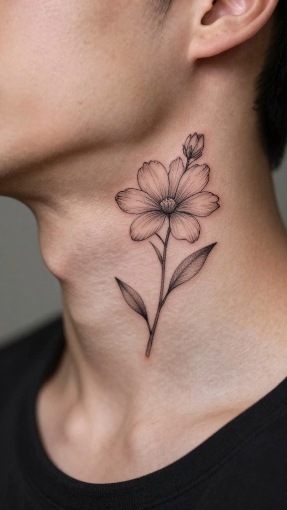 Floral tattoos can be a powerful expression of masculinity, especially when designed minimally. A small flower on your neck symbolizes growth and resilience, adding a touch of elegance to your look. These tattoos challenge stereotypes while showcasing your appreciation for beauty.