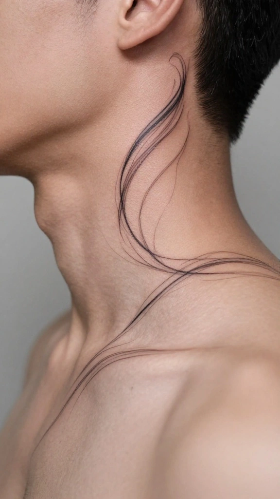 If you’re looking for a unique expression of creativity, consider an abstract line tattoo. These designs can flow seamlessly along your neck, capturing individuality and freedom through varying widths and curves. The beauty lies in their openness to interpretation; each viewer can see something different.