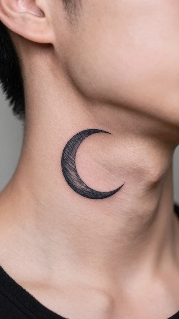 Simple symbols can convey deep meanings while keeping designs minimal. Consider a small symbol like a crescent moon or infinity sign as a powerful representation of your values or beliefs. These tattoos work beautifully on the neck, offering personal significance without unnecessary detail.