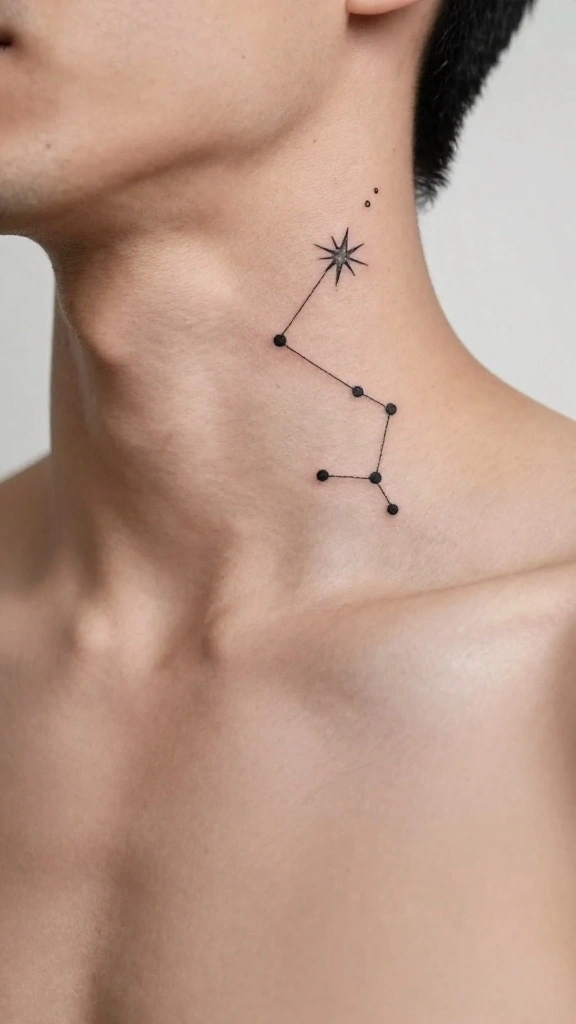 Star constellations can provide a unique and celestial touch to your neck tattoo while remaining minimalist.
