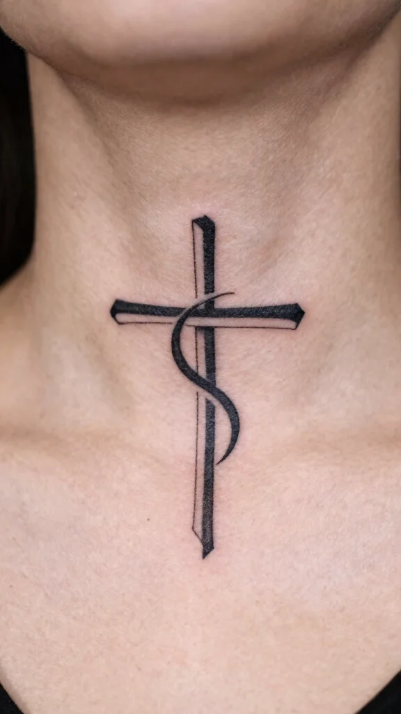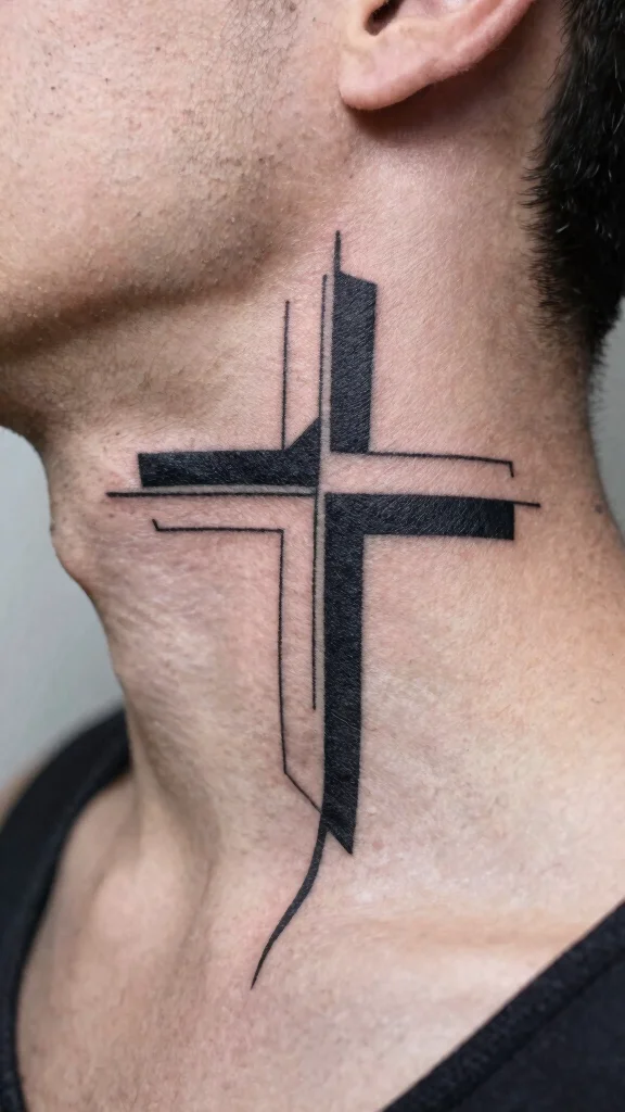 An abstract cross tattoo encourages creative expression, blending traditional elements with modern artistic styles. This design can feature swirling lines, splashes of ink, or distorted shapes, creating a unique representation of a cross that stands out. For those who enjoy artistry, this tattoo can reflect personal beliefs creatively. Ideal for wearers who want their tattoo to capture their passion for art, an abstract design can be tailored to fit individual meanings. The neck placement highlights the artistic elements while ensuring the tattoo remains significant. Consider these important factors: