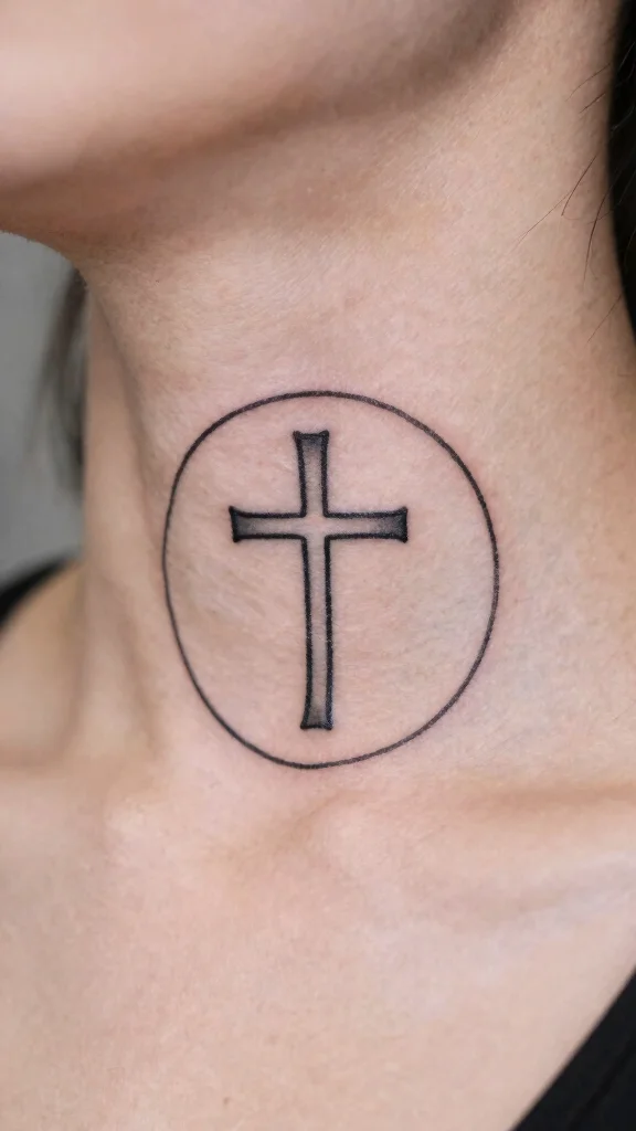 A cross enclosed in a circle symbolizes unity and completeness, making it a compelling design choice. This tattoo often represents the connection between faith and life’s cycle. The circle can be a simple outline or embellished for a more intricate look, all while keeping a minimalist aesthetic. This design works beautifully on the neck, where the circular shape complements the body’s contours. You can customize the design to reflect your beliefs while ensuring it remains visually striking. Key elements to keep in mind: