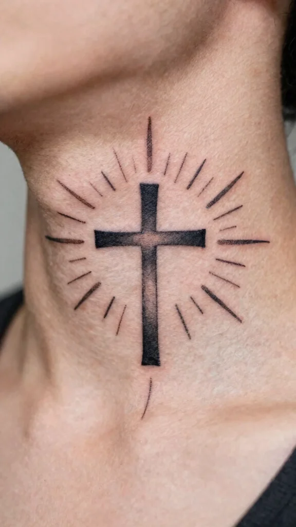 A cross tattoo adorned with sun rays symbolizes enlightenment and hope, creating an uplifting visual that conveys significant meaning. The rays can radiate from the cross, spreading positivity and faith. Simplifying the sun’s details keeps the focus on the cross while enhancing the overall design. Perfect for those wishing to express their beliefs alongside a sense of optimism, this tattoo can be placed on the neck to maximize attention and inspire conversation. Key design tips to consider: