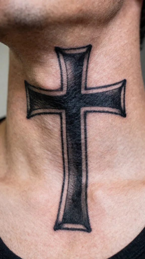 If you want to make a strong statement, a bold black cross tattoo is an excellent choice. This striking design features a thick outline that stands out boldly against your skin, signifying strength and confidence in your beliefs. The simplicity of a bold black cross can be both commanding and empowering, ideal for someone ready to embrace their faith. You can choose a classic cross shape or opt for a more creative interpretation with decorative elements or script. The key is to find a design that resonates with your personal style while ensuring it fits comfortably on your neck. Important factors to consider:
