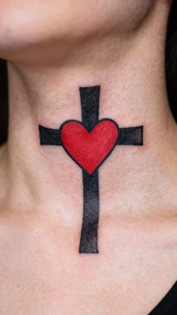 A cross tattoo featuring a heart captures the beautiful intersection of spirituality and love. This design typically integrates a heart at the center of the cross, symbolizing the bond between faith and affection. Visually appealing, this tattoo also holds deep personal significance. The heart can be styled in various ways, either filled with color or outlined for a minimalist look. This tattoo is ideal for those wishing to express both their love for life and their beliefs in one cohesive piece. Key aspects to consider: