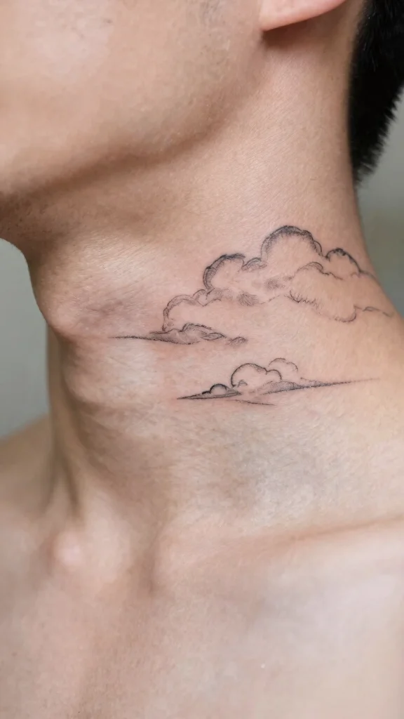 Cloud tattoos embody a sense of freedom and possibility, often symbolizing dreams and aspirations. Minimalist cloud designs can be delicate, making them perfect for neck placements. Men who connect with the symbolism of clouds often find these tattoos appealing, evoking a connection to the sky.