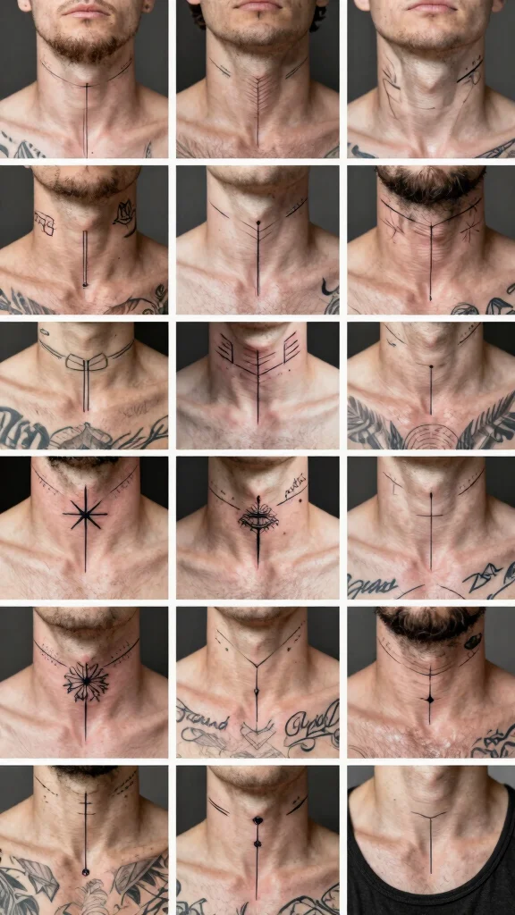 What are some minimalist neck and throat tattoo ideas for men?
