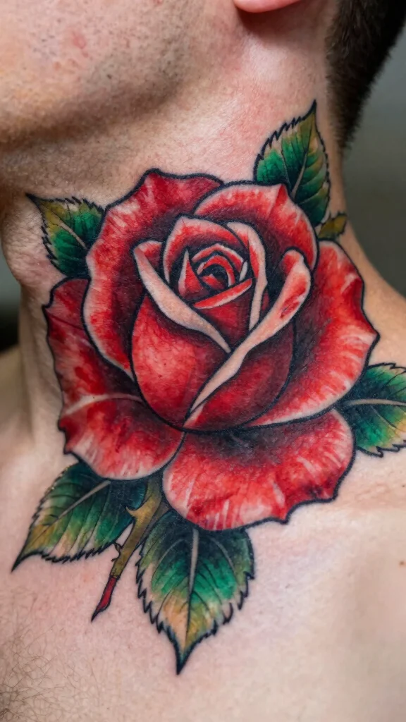 If you’re looking to transform an old tattoo, a bold rose cover-up is an excellent choice. Roses symbolize love and passion, and their vibrant colors—like rich reds, soft pinks, or deep purples—can easily overshadow previous designs. This eye-catching approach not only masks your old ink but also serves as a stunning centerpiece for your neck tattoo.Choose a larger rose with intricate petals and shading for maximum effect. Positioning a single rose on one side or a cluster around your neck can enhance your natural contours, making it a striking statement piece.Considerations:– Select colors that contrast beautifully with your skin tone.