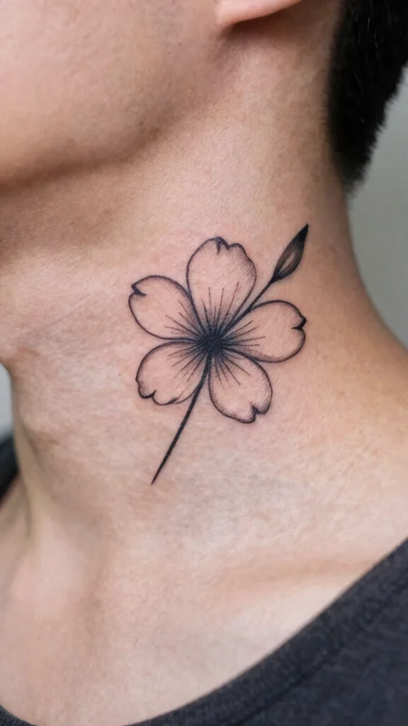 Minimalism meets floral designs in this modern approach to neck cover-up tattoos. Simple flower silhouettes can effectively disguise old tattoos while maintaining a clean and contemporary appearance. This tattoo style focuses on outlined designs, which can help cover previous work without overwhelming your aesthetic.Minimalist flowers can be styled in various positions around your neck, subtly enhancing your personal style. This approach is both chic and understated, appealing to those who prefer simplicity.Key Points:– Choose flowers that resonate with you, from daisies to tulips.