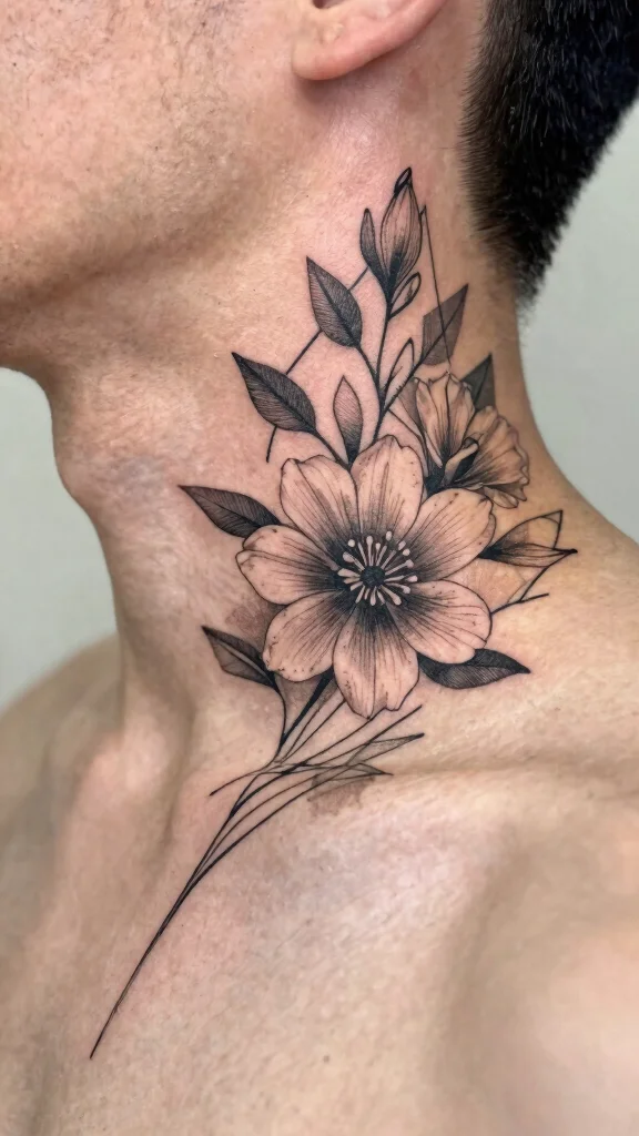 If you’re someone who appreciates masculine aesthetics and enjoys floral designs, this collection of ideas is tailored just for you. You might be looking for something to mask an old tattoo or simply want to add a fresh look to your neck. Either way, you’ll find a range of options that combine rugged masculinity with beautiful floral elements. Each design draws on nature’s beauty while maintaining a strong, masculine flair.