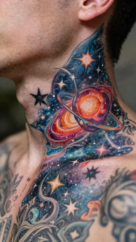 Cosmic tattoos inspire a sense of wonder and connection to the universe. Designs featuring stars, planets, or galaxies create stunning visuals on your neck.