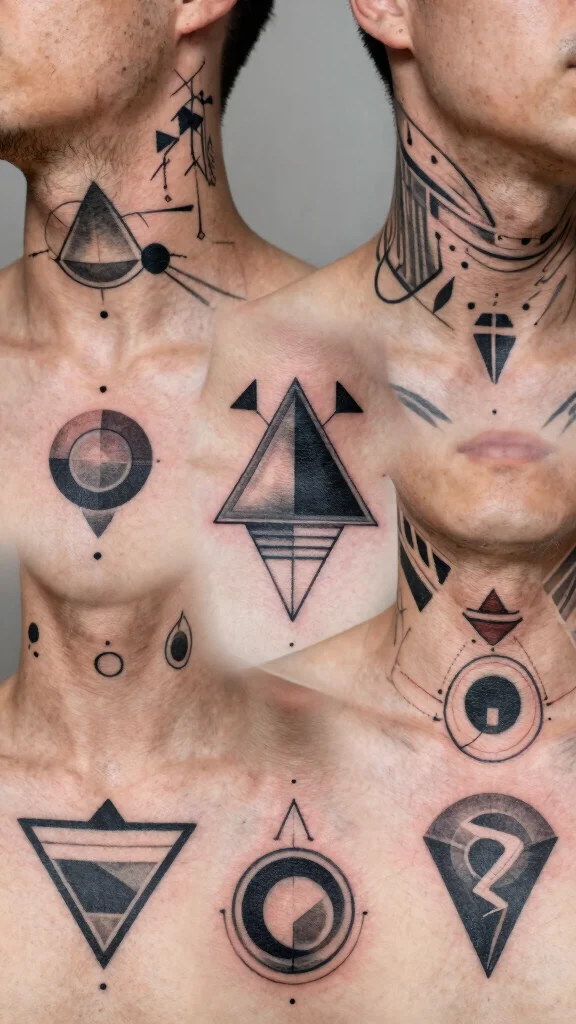 Geometric neck tattoos are perfect for those who appreciate modern aesthetics and precise lines. This style features shapes like triangles and circles, either on their own or layered together for added depth. Imagine a tiny triangle at the nape of your neck or a series of circles tracing down your skin, creating a striking yet uncomplicated look.