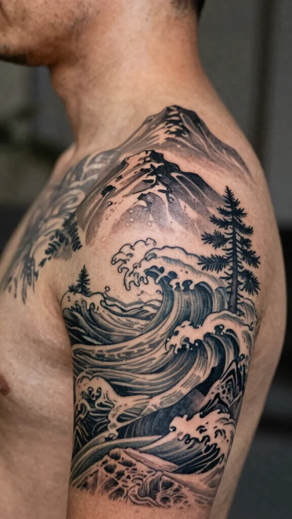 Nature-inspired tattoos beautifully capture the essence of the outdoors. Designs featuring mountains, trees, and waves can symbolize freedom and your connection to nature. Imagine a gentle wave curling around the side of your neck, evoking tranquility, or a delicate outline of mountains representing resilience.