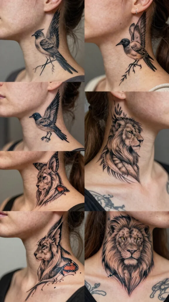 Select animal tattoos that symbolize traits you admire, enhancing your neck tattoo’s personal significance.