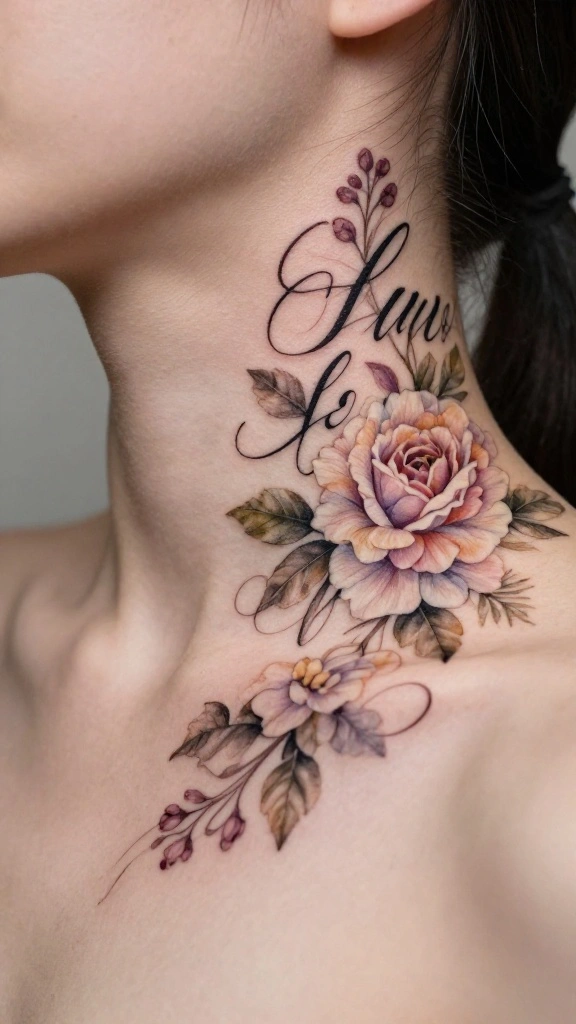 Absolutely. Many floral neck tattoos are designed to be versatile. A small behind-the-ear bloom or a delicate side-neck vine can be easily hidden with hair, scarves, or high collars, making it suitable for professional environments. If you want it more visible for personal style moments, pair a slightly larger bouquet with your hair up or choose a design that runs along the side of the neck. It’s all about selecting neck tattoo designs that balance delicate neck ink with your lifestyle.