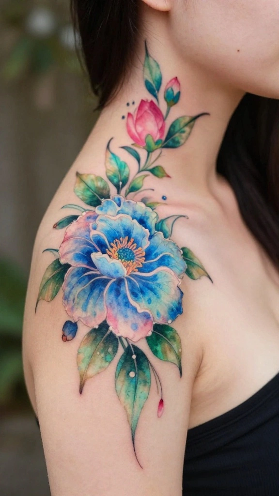 Watercolor floral tattoos are perfect for those who celebrate artistic expression combined with beauty.