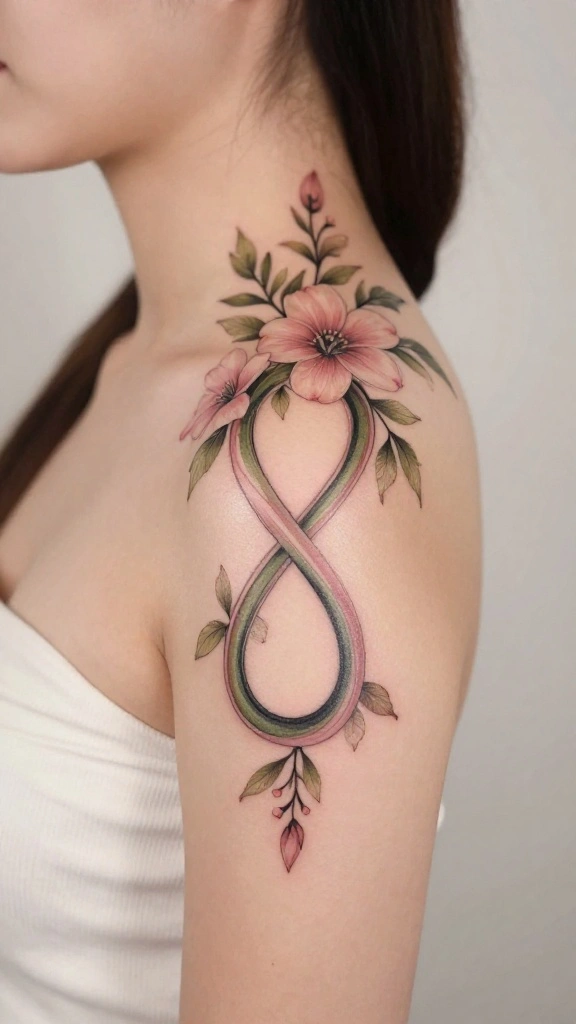 If you’re looking for a design that embodies everlasting beauty, the floral infinity symbol is a beautiful option. This tattoo creatively combines the infinity sign with floral elements, representing eternity and your connection to nature. The flowers can bloom gracefully along the symbol’s curves, creating a visually appealing and meaningful piece.