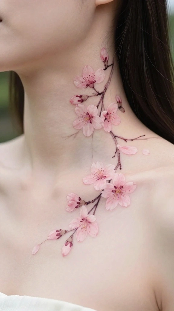 Cherry blossoms represent the fleeting beauty of life, making them an exquisite choice for a neck tattoo. Their soft pink petals provide a delicate touch, and you can arrange them creatively along your neck for a flowing design. These blossoms symbolize renewal, making them a meaningful choice for your body art.