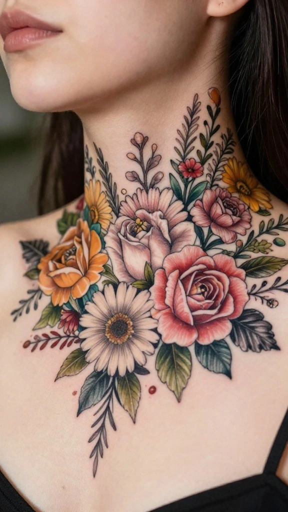 Floral neck tattoos offer a beautiful way for women to express their individuality and love for nature through art. With so many unique designs and styles, there’s a perfect floral tattoo for everyone. Whether you lean towards subtle and delicate or bold and vibrant, these tattoos can reflect personal meanings and aesthetics.