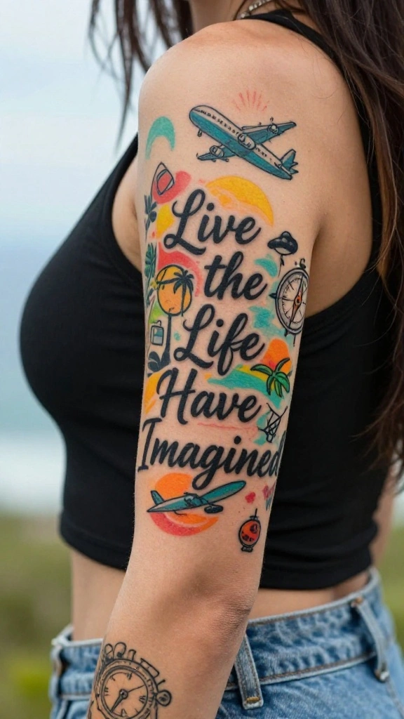 This quote inspires you to pursue your dreams boldly. Envision a vibrant design featuring travel icons like airplanes or compasses, visually representing your aspirations. This tattoo encourages you to take risks and chase your dreams with confidence.