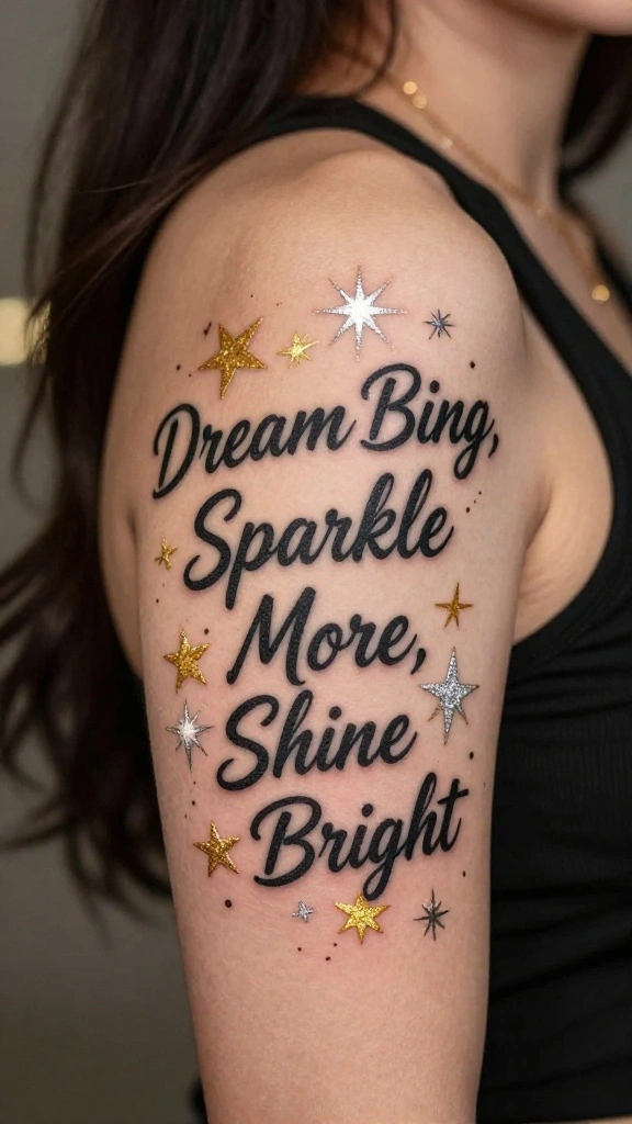 This playful quote is perfect for those who love to express their vibrant spirit. Imagine stars or glittering elements enhancing the design’s lively essence. This tattoo embodies joy and encourages a positive outlook on life.