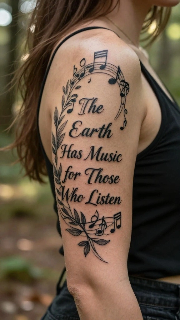 For nature lovers and music enthusiasts, this quote beautifully captures the magic around us. Picture musical notes dancing among vine-like plants, symbolizing a harmonious bond with nature. This design is perfect for those who find joy in both music and the outdoors.