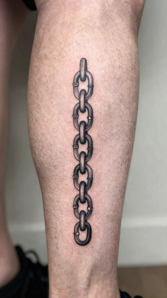 Link chain tattoos symbolize connection and strength, making them a great choice for those who value relationships. A small chain tattoo can be inked on the leg, perhaps wrapping around the ankle or positioned along the calf for visual appeal.
