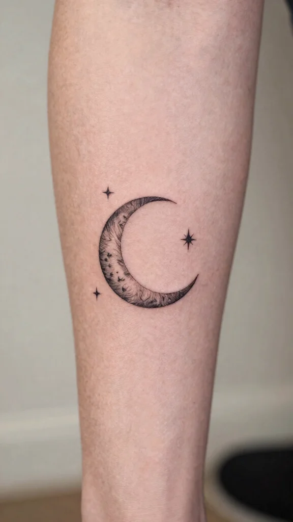 Celestial tattoos, like moons and stars, symbolize guidance and ambition, making them meaningful choices for many. A small crescent moon or star cluster can beautifully represent your connection to the universe. These delicate designs fit well on your leg, either on the calf or behind the knee.