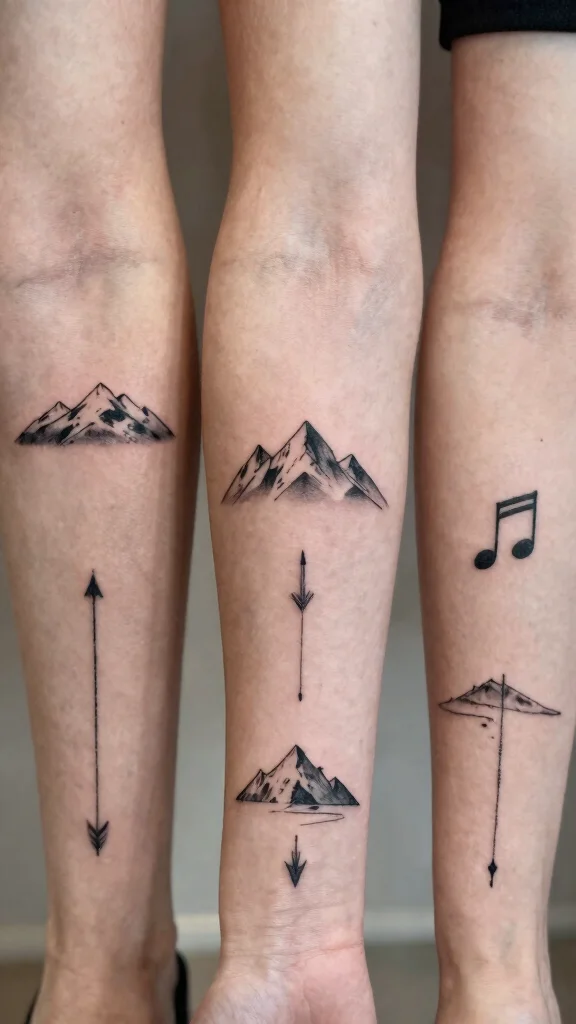 – Explore designs like minimalist mountain ranges and simple arrow designs that reflect personal interests and lifestyle.