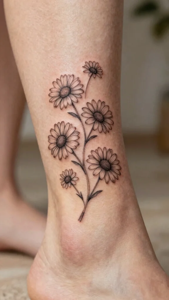 Looking for a sweet and charming tattoo? A delicate daisy chain wraps gracefully around your ankle or calf, giving a fresh touch of nature. This design is playful yet elegant, capturing the essence of youth with its soft floral charm. Daisies symbolize innocence, making this tattoo even more meaningful and personal.