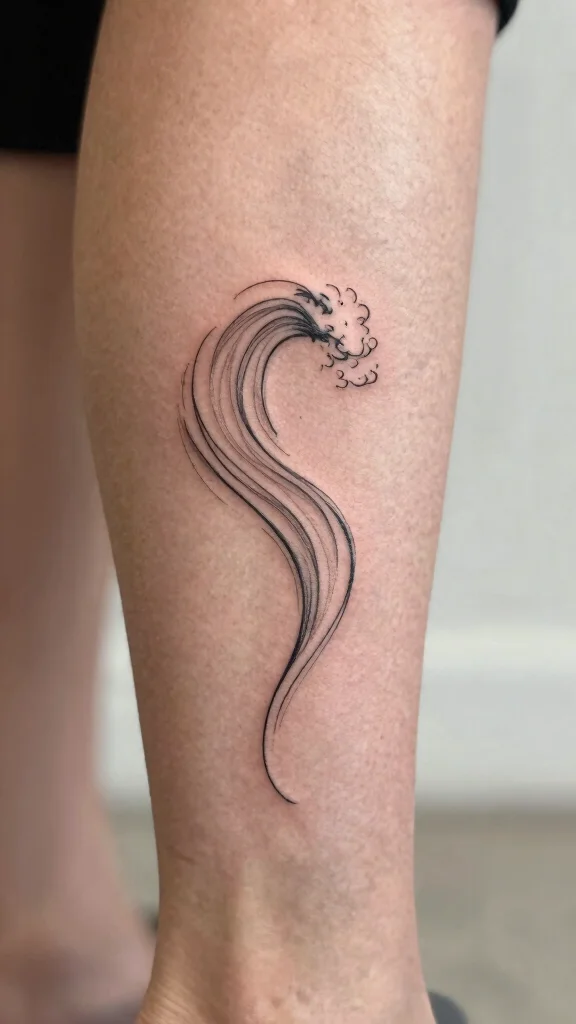 A simple wave tattoo symbolizes your connection to the sea while enhancing the beauty of your leg with gentle elegance.