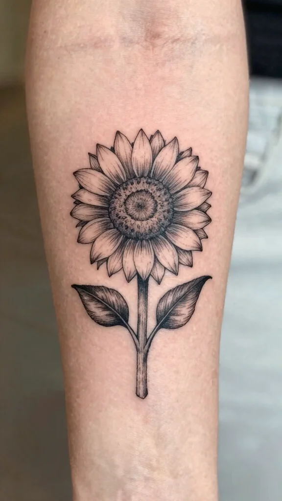 A tiny sunflower tattoo is a joyful way to express your personality and spread positivity wherever you go.