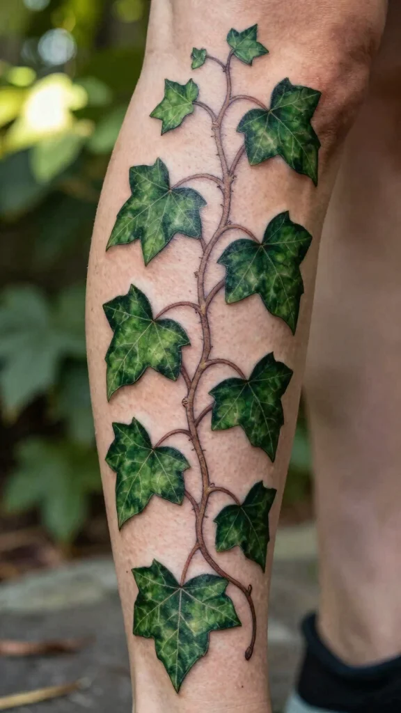 Placed along the calf or thigh, the ivy can be elongated for a stunning visual effect. Each leaf carries its own meaning, making the tattoo not only beautiful but also deeply personal.