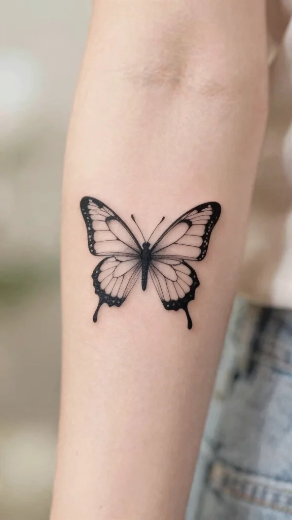 A minimalist butterfly tattoo not only adorns your leg but also signifies change and hope.