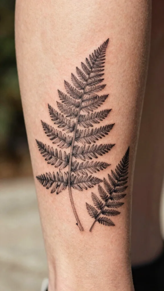 Positioned along the calf, these small tattoos create an enchanting visual flow. They can be done in black ink or vibrant greens, enhancing the natural aesthetic of your body art. Fern tattoos can also be combined with flowers for a cohesive theme.