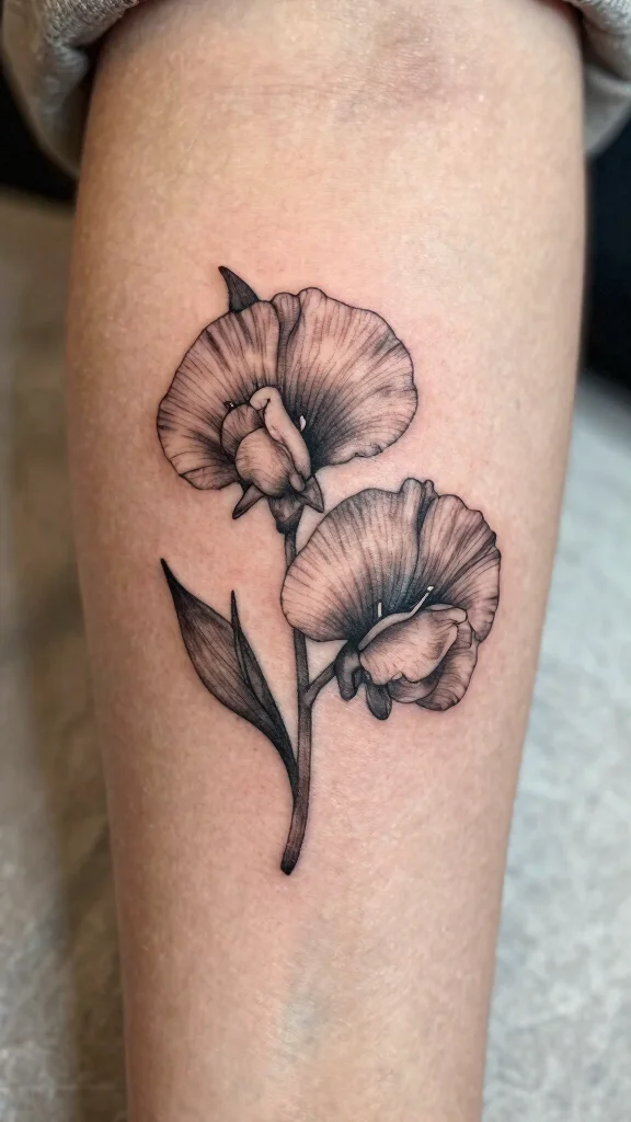A sweet pea blossom tattoo not only enhances your beauty but also celebrates the joys of life.