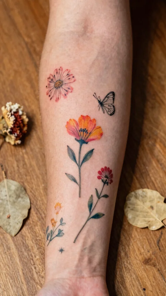 Pain varies with your tolerance and the exact spot. Generally, small leg tattoos are manageable, with the shin and ankle being the more sensitive areas. A tiny design can take about 15-30 minutes; if you’re adding a few small flowers or a short vine, plan 30-60 minutes; a couple of tiny pieces could stretch to 1-2 hours. Bring a light snack and a good night’s sleep, and ask your artist about numbing options if you’re worried. Aftercare remains the same as above to keep your small leg tattoos looking sharp.